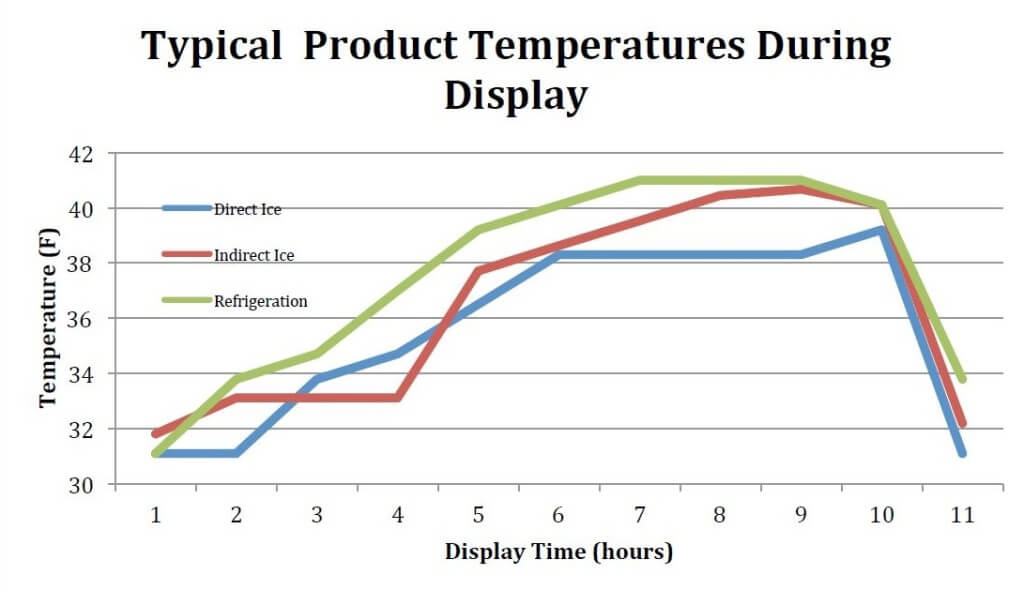 Even though science and the experience of many retailers bear out the important qualities of ice in seafood cooling, many stores still use mechanical refrigeration methods. This often results in dried-out, unappetizing seafood displays that don’t move the product. Mechanical refrigeration will usually entail cold, dry air blowing over fish for long periods of time—often up to 12 hours. This process often dries out seafood until large portions of the display are simply unsaleable. Mechanical dehydration methods can also cause seafood to shrink, reducing its sellable weight. In addition, some seafood cases employ misters in an attempt to rehydrate the fish. But freshwater hydrators do not mix well with saltwater fish, so the hydration achieved is temporary at best.